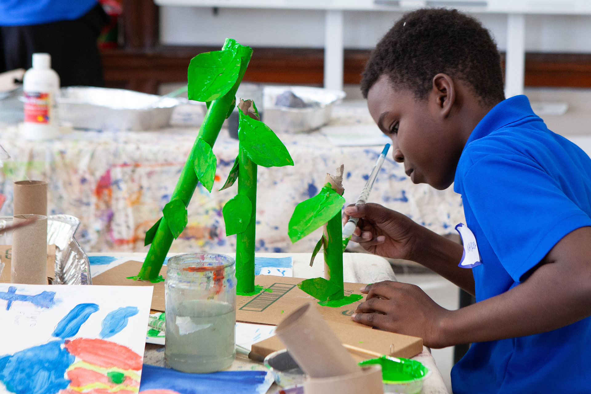 Each Metamorphosis Project is centered around a topic like water, animals, or community that students are studying in their science classes. During the program, students develop an emotional connection to the topic through art-making, gather knowledge on their topic through research, and experience their topic first hand on a nature field trip. Using their gathered knowledge and wisdom, they draft and build models of vehicles, machines, and architectures that attempt to solve issues like ecological destruction or community disintegration. This design-and-build process engages students’ collaborative, critical thinking, and motor skills while helping them to see the real-world applications of science learning. The project’s impact is deepened through complementary elements such as peer critiques, collaborative exercises, civic and family engagement opportunities, and exhibitions of student work.