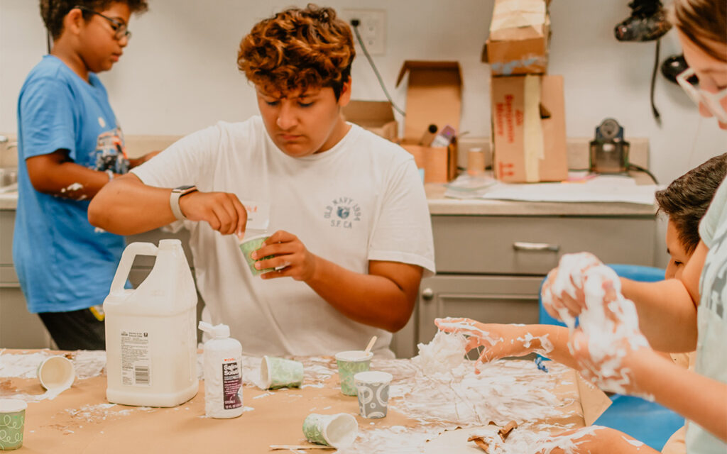 Meet up with your friends in the morning and select your schedule for the day. Challenge yourself on the climbing wall, relax and create in the Makerspace Lounge, or develop a new portfolio piece in weaving. Whatever your calling, our pro teaching artists are there to help make it happen!